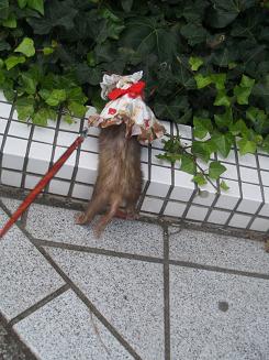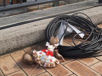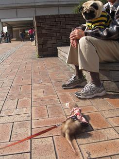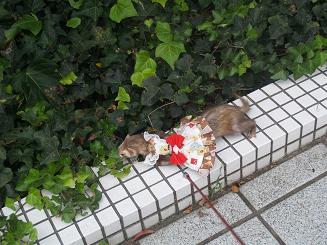 | あ、あの。。。あなたですね。 さっきあたちの尻尾を踏んだのは。 |