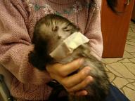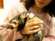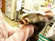 | 2.昨年11月、マシュが食べたものを吐くようになった。 病院に連れて行ったら、胃炎の疑いがもたれた。 これはマシュを診てくれる病院を探してから2軒目の獣医さん。この獣医さんもフェレットを見るのは 初めての様子だった。 とりあえず、もらった薬でマシュは回復。完治したと思った。 →初めてフェレットを診る様子の獣医さんだったのだから、 念のため3軒目に診てもらうべきだった。 |