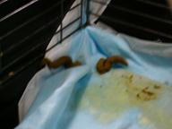 5.最終の段階まで、マシュとれぱんを一緒のケージで一緒のハンモックの中で 寝かせていた。 別居させたのは、マシュが死ぬ2日前。 → 病気、とわかった時点でかわいそうだけど2匹を別々にさせるべきだった。 今回はれぱんまで体重が減少してしまった。(ストレス?) |