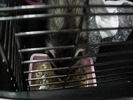 2005年3月22日(火曜日) 朝、いつものようにハンモックへ。 そこには温かいれぱんがいた。ハンモックの中に手を入れる。 ひんやりしたマシュの頭に触れた。 マシュは逝ってしまった。 お気に入りのケージの お気に入りのハンモックの中で 大好きなれぱんと一緒に眠りながら マシュは逝ってしまいました。 |