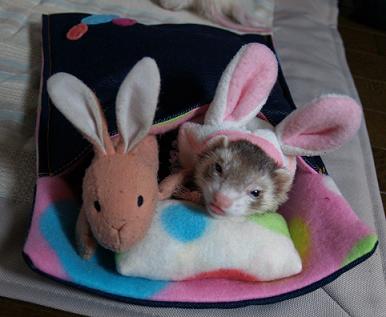 | 左のうさぎさんではありません。 彼女はおとなしくて良い子です。 問題は右側の「うさぎもどき」。 「あたちじゃないですよ。」 と、小生意気にも舌を出しているこのいたち。 昨晩私は間違って私の部屋のドアを閉めて眠ってしまいました。 夜中に隣の自分の部屋から私の部屋の布団に侵入しようとしたれの字。 「開けてくださいっ。何でドア閉めてるんですかっ。」 と、ガリガリとドアを叩く音をおぼろげに覚えています。 その後、 「どうして開けてくれないんですかっっ。 ばかぁぁーーー!」 と、後ろ足でドロップキックでもしたのでしょう。 がんっ!というすごい音がしたのも夢の中で覚えています。 翌朝私が目にしたのは、ぐっちゃぐちゃの隣の部屋。 おもちゃ箱はいつも以上に激しくひっくり返され、エサがばらまかれ、 滑り止めにしいてあるマットもシワがよって波打つ状態。 ドアの角っこの色が変わり剥げています。 さらに億へと進むと、そこには足を開いて「ふて寝」状態のいたちが1匹。 「てやんでぇ。ばぁろー。」 という声が聞こえてきそうな寝相でございました。 仕方ない。今日はちゃんとドアが開いているのを確かめてから寝ることにしよう。。。 2008年2月11日 |