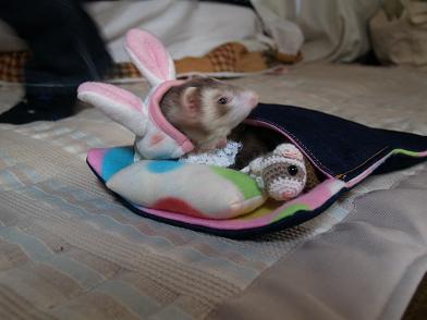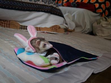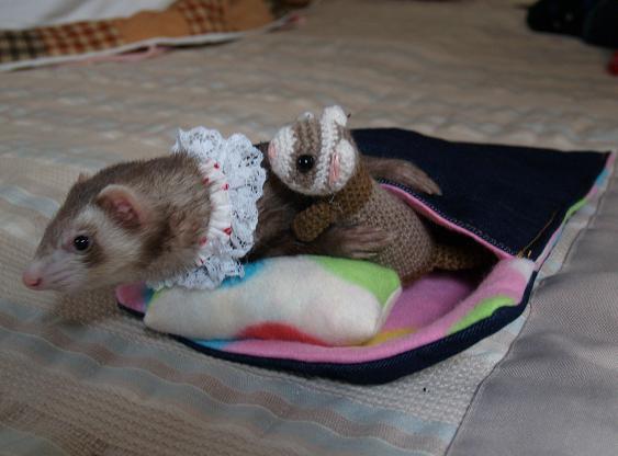 | 同じいたちだとバレているようです。 これは姿を変えなくては お布団から出られなくなってしまいます。 |