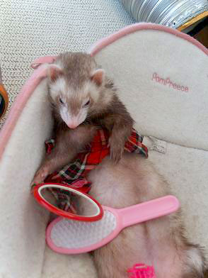 | ほっぺをぱふぱふしたら 次はお毛毛をとかします。 |