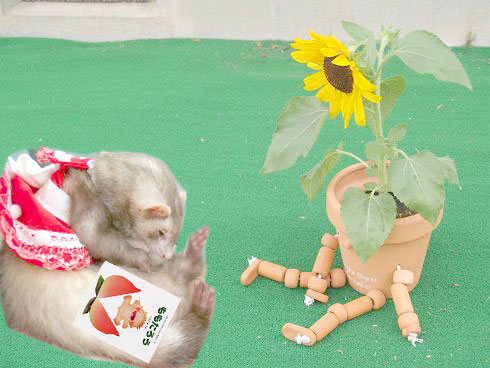 | 小さなひまわりさんも、あたちと同じ臭いですね。 良いお友達になれそうです♪ |