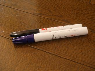 | まずはコレ。 マジックです。 はぁ??? という声が聞こえてきそうですが、、、 まず、災害にあったらこのマジックで、れの字のお腹に大きく 「れぱん (住所) (電話番号)」 を、書くつもりです。 万が一はぐれてしまった時の対策です。 |