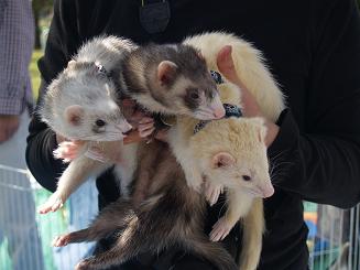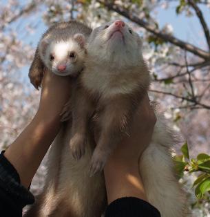 | 他にも、トリプルFやショーブリードもあるようです。 マーシャルのフェレットは性格が穏やかなものが多い、噛み癖が少ない、小柄で鼻筋が通っている。 カナディアンやニュージーはどっしりとした頼もしい体型が多い、噛み癖が強いものが多い。 。。。と言われていますが、個体差によりますし最近では血の入れ替えの為ファーム同士の掛け合わせを行っている というお話ですので、ファームとしての特徴も薄れてきているように思えます。 でも、「ファームなんてどうでもいいの♪」「どこの出身でもうちのフェレットが一番♪」という飼い主さんが大多数でしょう。 |