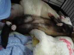 | 「本物の」カナディアンフェレットを手に入れるのは大変困難と言われています。 刺青が「X」もしくは「Y」の文字がそれぞれオス・メスで入れられているのが特徴なのですが 大変高価らしく、なかなか手に入らないのが現状です。 (フェレットファクトより引用) ちなみにカナディアンファームのウェブサイトを見つけることはできませんでした。 どうやら卸し専門で個人相手には商売していないのが原因のようです。 (Yahooアンサーズより引用) |