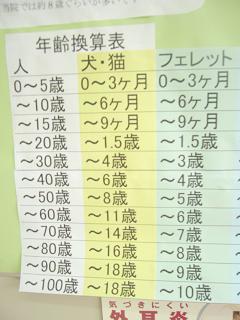 | いつも大変お世話になっている動物病院で こんな表を見つけました。 |