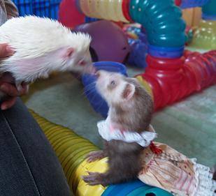 | うちに既にいるペットと仲良くなれるかな? フェレットを飼っているけれど、他のペットも一緒に飼えないかしら? どうなんでしょう? こればっかりは、フェレットや他のペットの性格によるので一概に言えません。 我が家の場合をご紹介します。 |