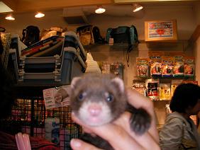 | フェレットワールド(中野店) 2007年、店内改装して広くなったそうです。 一歩入るとそれこそフェレットワールド。ところ狭しとフェレットグッズが並び、ベビー達も勢いよく迎えてくれます。 店員さんも当然フェレット好きな人達です。 私が行った時には男性の店員さんが、店内のフェレットについて色々親切にお話してくれました。 |