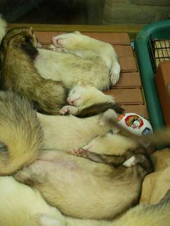 | 2009年1月1日情報 マーシャルフェレット販売中。 だいたい6万円前後です。 既にフェレットを飼っている方には、その先住フェレットとの相性チェックも 快くしてくれます。 なーんか、マーシャルフェレットってみんなデカくなったなぁ。。。 2012年11月14日情報 その数は減少したものの、毎日必ずフェレットが販売されています。 ここのフェレットの特徴は「とにかくデカイ」「性格おっとり系が多い」 むちむちフェレットと間近で出会えます。 |