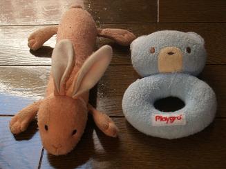 | フェレット特有の動きってあります。 おもちゃを使った動きもその1つ。 両手で何かをお腹に抱え、そのまま後ずさりするのです。 れの字はこの2つのおもちゃでその動きを見せてくれます。 大事に両手で抱え、よいしょ、よいしょ、と後ろ歩き。 でも15秒で飽きます。 ご近所さんからいただいたおもちゃです。 |