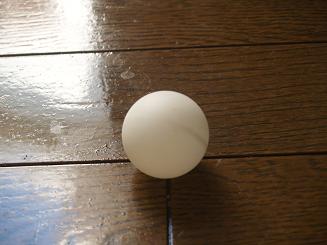 | 唯一30秒くらい時間がもつおもちゃ。 鼻でツンツンとドリブルしてみたり、 抱えて運んでみたり。 このピンポン玉を見せると、れぱんのお目目が ♪♪♪ となります。 |