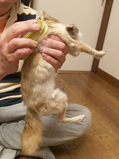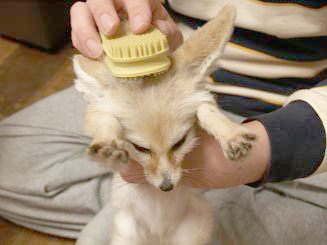 | ブラッシングがキライなフェネックが多いのですが フジコは好きみたいです。 |