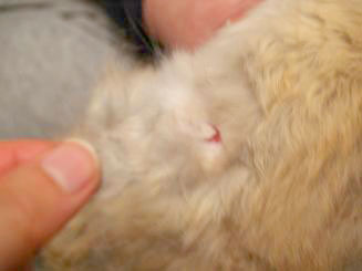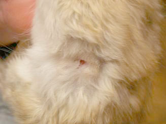 | 毛玉をハサミで切り取ったところ 間違って皮膚まで切り取ってしまいました。 |