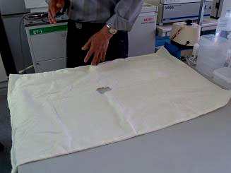| 4.机上にシーツを敷きます。 5.細胞を採取するペットの皮膚をキレイに消毒します。 アルコールだけでは足りませんので、 イソジンのような消毒液を使用します。 6.ピンセットで皮膚をつまみ、針を皮膚から5mmくらい入れて 細胞を体から取ります。 7.採取した細胞は2つの道に枝分かれして、 最終的にはどちらも同じ細胞保存庫に入ります。 細胞の採取にはおよそ30分の時間がかかります。 |