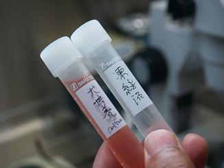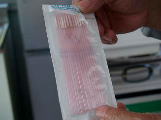 | 小さな細胞の場合はゼラチウムの代わりに こんな細いストローを保存容器として 使用することもあります。 |