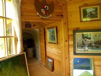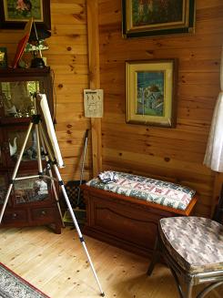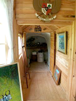 | 年の半分をこの山荘で過ごす鈴木先生。 山荘にいるときは絵を描くことが多いそうです。 アトリエからまっすぐ伸びた通路の先に ペットの細胞の保存庫を置きました。 |