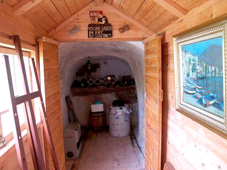 | 建物の外側から見ると保存庫が置かれている場所が 洞窟になっているのがわかります。 |